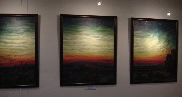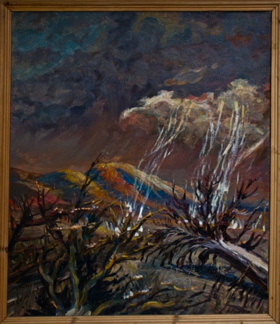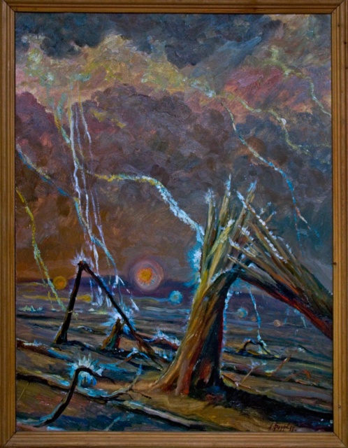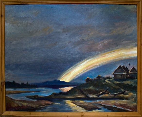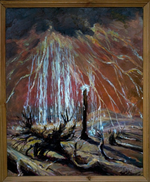 Paintings of Tunguska event based on descriptions from eye witnesses and scientific theories.
