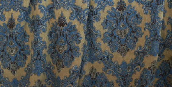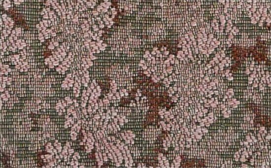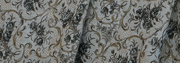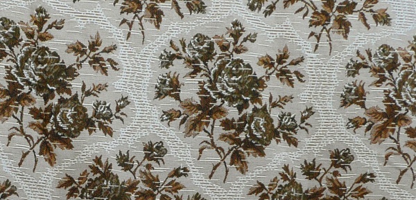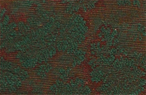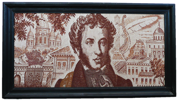 The following is a unique sample of textile designed for a celebration of a Russian poet A. S. Pushkin, it can be noticed the composition is painting-like, i.e. not repetitive. This art work is exhibited in the Russian Museum.